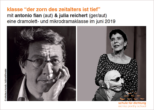 dramolett- und mikrodrama-klasse zum thema wut und zorn mit schriftsteller und dramatiker antonio fian & autorin, regisseurin und puppenspielerin julia reichert (kabinetttheater).