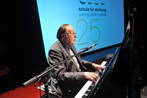 gerhard rühm ist als komponist, pianist, performer, literat und bildender künstler ein grenzgänger zwischen den kunstdisziplinen. in diesem crossover von wort und bild, von sprache und musik, von performance und literatur bewegen sich auch jene künstlerInnen, die an einem abend ihre arbeiten im ausstellungsraum für und mit publikum entstehen lassen: