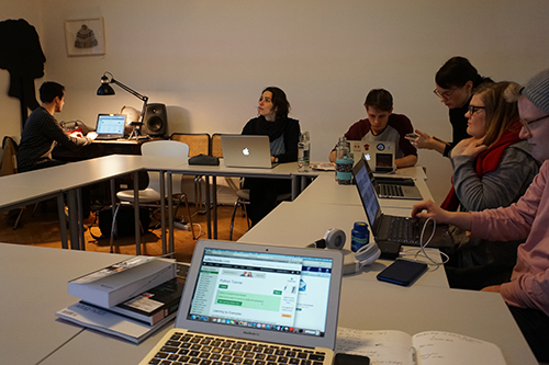 mit fabian navarro, den code&poetry-poetinnen und -poeten michaela anderle, lucas friedrich, vera reumann, alexandra schulz, katharina tiwald und thomas weber