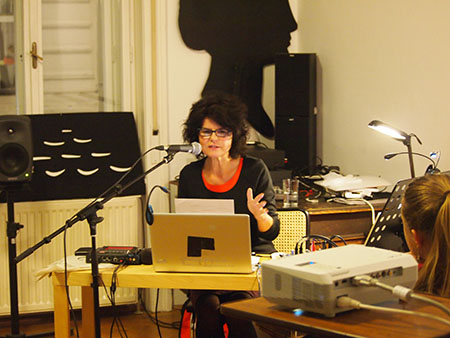 heike fiedler, lecture-performance am 21.10.2013 in der sfd; © schule für dichtung/harriet nachtmann