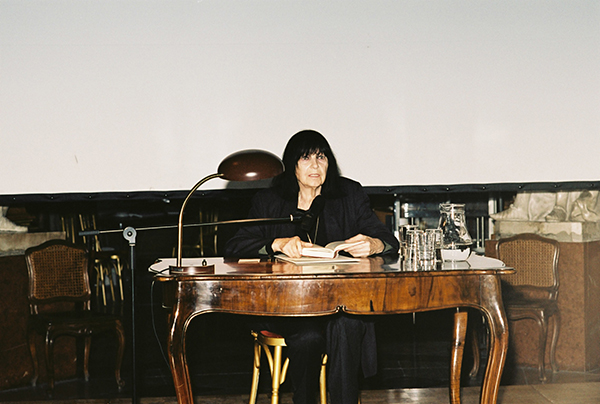friedrike mayröcker, viele jahre eng mit der sfd verbunden, hier bei der festveranstaltung "10 jahre schule für dichtung" 2002 in der wiener nationalbibliothek